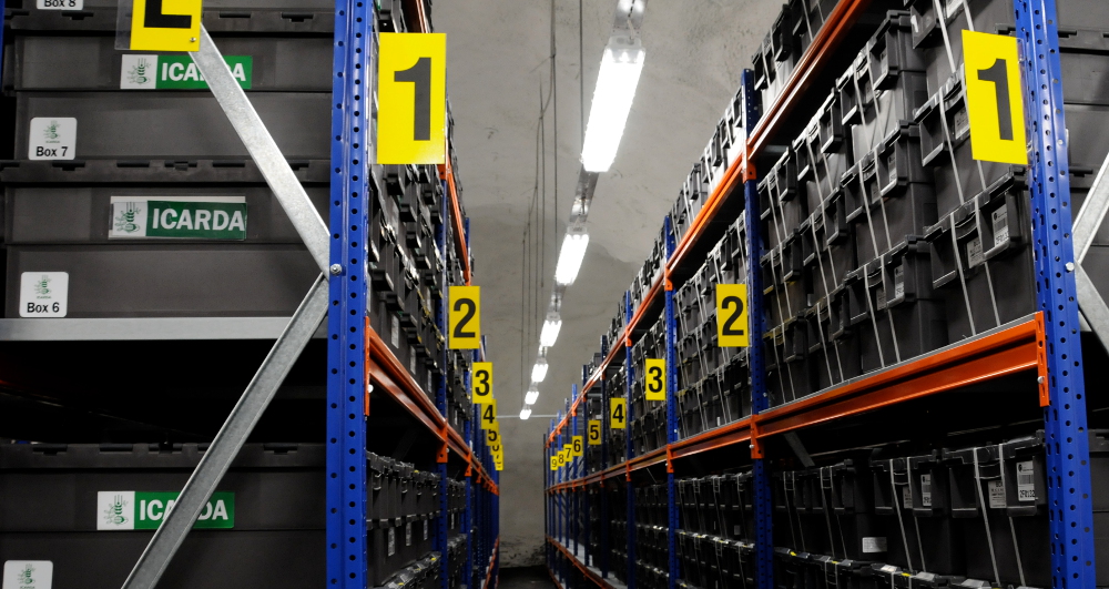 | ICARDA's boxes at Svalbard global genebank �to the left side�, a second level duplicate of ICARDA�s in-trust collection. Photo credit: Mari Tefre. | |